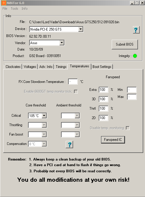 majd minden feltett kérdésre y (yes-el) válaszolni. Ha kész restart és remegsz, hogy indul-e a vga-d vagy nem. Ha nem, akkor is helyre lehet hozni az eredeti bioszával, viszont szükséged lesz egy integrált vga-s lapra, vagy egy pci vga-ra.CSAK SAJÁT FELELŐSSÉGRE, HA HAZAVÁGOD A KÁRTYÁD, NE ENGEM OKOLJ!!!