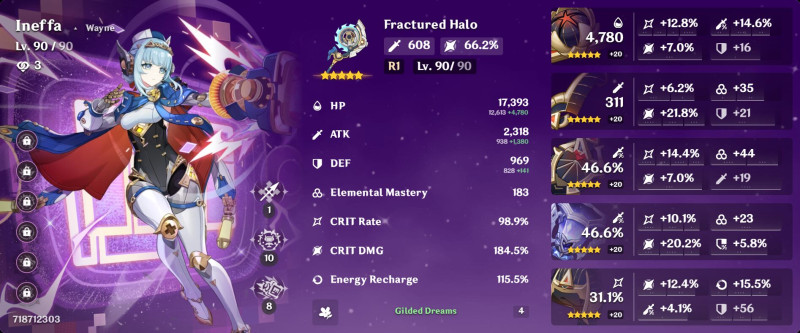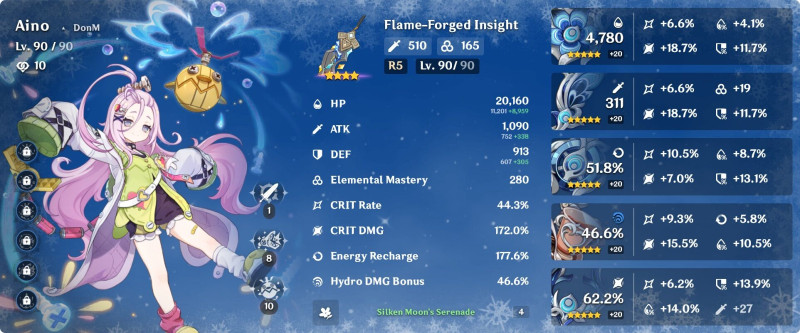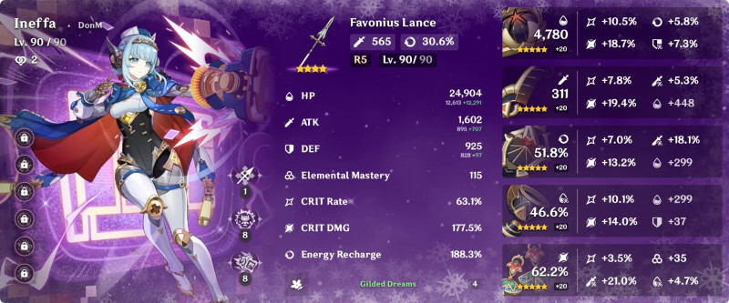 Ineffa helyett Aino vagy Nahida ajánlott ide, gondolom hogy ne zavarjon be elemi reakciókba az electro. Attól még lehet megnézem majd, ha kiszedem Ineffa-t, de egyelőre ahogy írtam elég felhúzni Columbina-t és Nefer-t, de még Lauma-n is van mit alakítani. Na itt volt a nagy hiba részemről, két utóbbi csaj megvolt megjelenésük óta, mégis félbehagytam a fejlesztésüket, és most ahelyett hogy csak Columbina-ra kéne koncentrálnom, itt van másik kettő is...