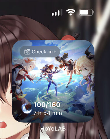 Mobilos widget, így meg tudod nézni könnyen hogy mennyi resined van, illetve alul írja mennyi idő míg eléred a resin cap-et. Gondolom ezt eddig is láttad hoyolab appban, de azt ki nézegeti folyton?