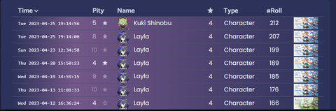 itt az én statisztikám az elmúlt 6 hónapból. Most utoljára Tighnarit húztam ami standard banneres ezért a következő fixen Baizhu lesz nálam. -