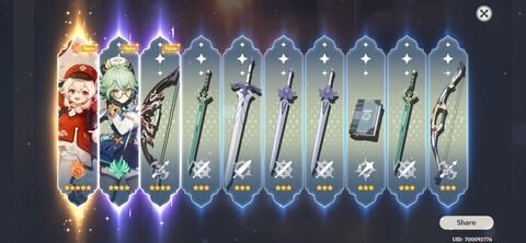 .A többi csak ilyen két-három csillagos íj, kardm, buzogány. Szóval említésre sem méltó dolgok, de megérte a 1600 primogemet a leány miatt