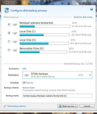 Az Acronis true image 2011-ről kéne egy két beállítási és egyéb infó.Most használom először és angol nyelvű így nekem kissé nehézkes a win 7 sajátja után.Most itt tartok :