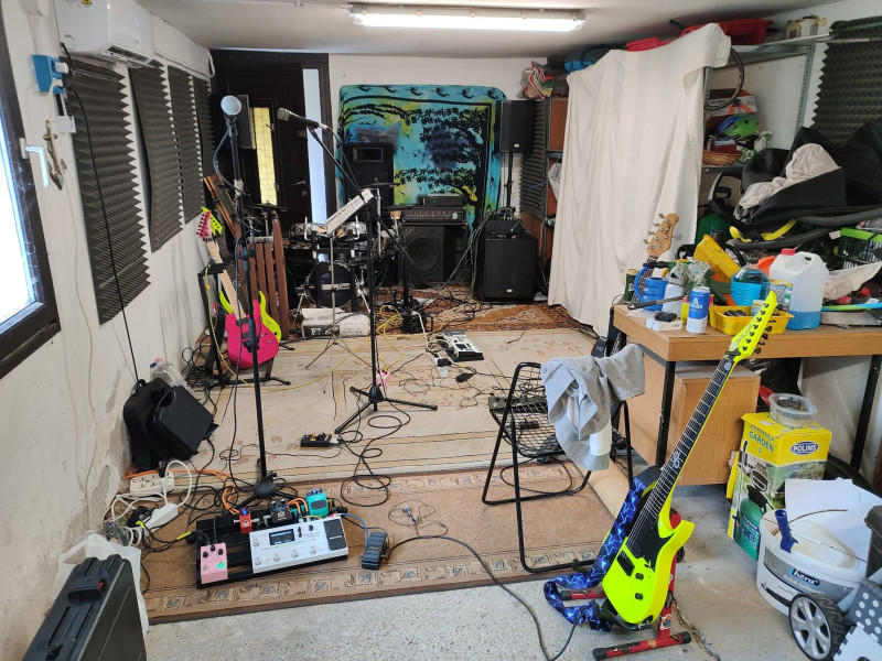 Ez arra jó, hogy a teljes zenekar megszólaljon a próbateremben és koncerten. Dob, ének, gitárok, basszusgitár. Van most a jelenlegi cucc, ami egy Thomannos 2.1-es rendszer, áll egy 15-ös szubból és két 10-es topból. A képen megtalálhatóak a garázs végébe állítva.