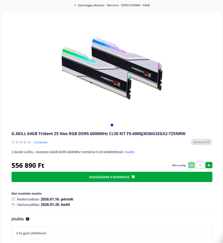 Ja és ha már úgyis a Prohardveren vagyunk, akkor említésre méltó tény, hogy szinte pont annyiba került ez az EV hangfalszett, mint az a 64GB DDR5 RAM most, ami itt ketyeg a gépemben. Persze én a memóriát 2024-ben vettem.