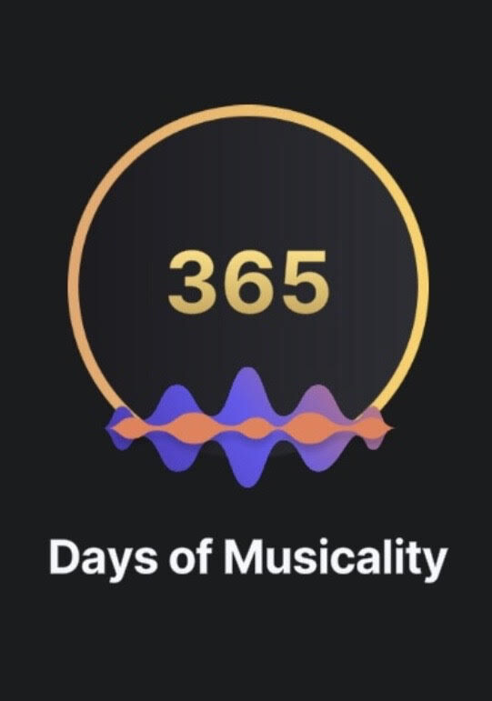 A Yousician app-ból van, azt jelenti hogy az elmúlt egy évben minden egyes nap gyakoroltam. Még mindig szörnyű vagyok, de ha hinni lehet a statisztikának tovább jutottam mint a gitárral próbálkozók 90%-a..