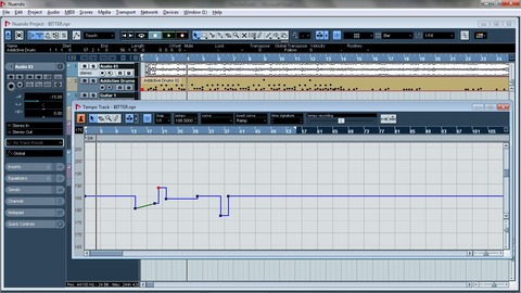 Na most már a dobnál elakadtam, kiderült, hogy a szerencsétlenek nem tartották a tempót, és ilyen ingadozó tempo tracket kellett szerkeszteni, hogy egyáltalán be tudjam írni a dobot:Innen is küldök nekik egy metronómot.
