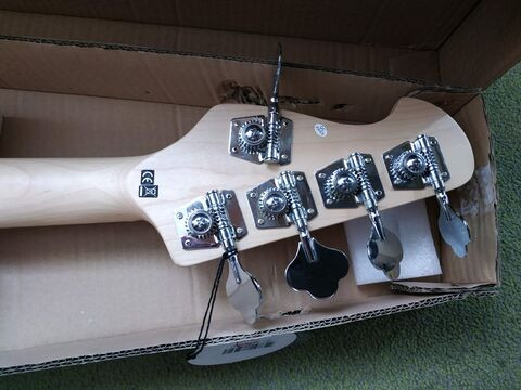 Semmi hibát nem vettem észre a gitáron a beleütött D betűket leszámítva. Hacsak nem az a baja, hogy a potik alatti takarólemezen be van szorulva a védőfólia a csavarok alá, azt csak kicsavargatással lehet majd szépen kiszabadítani. Meg mintha a hídi pickup nem lenne egészen teljesen középen. A bundok jónak tűnnek, az aktív elektronika is működik, frankón szól, jó az összes poti. Annyira szép, hogy legszívesebben megtartanám, de a basszeros barátom tutira a magáévá teszi. Nem baj, én döngettem meg ma este először.