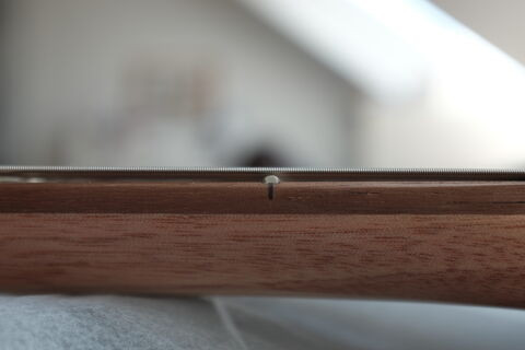 Nekem a ferde hangszedők nem tetszenek ebben a kivitelben. No nem műszakilag, csak bántják a szemem. Húrokon kevésbé túlnyúlva, lekerekített végekkel (~mint egy strat hídi) emészthetőbb lenne ferdén is. De egy derékszögekkel határolt valami ne legyen ferde