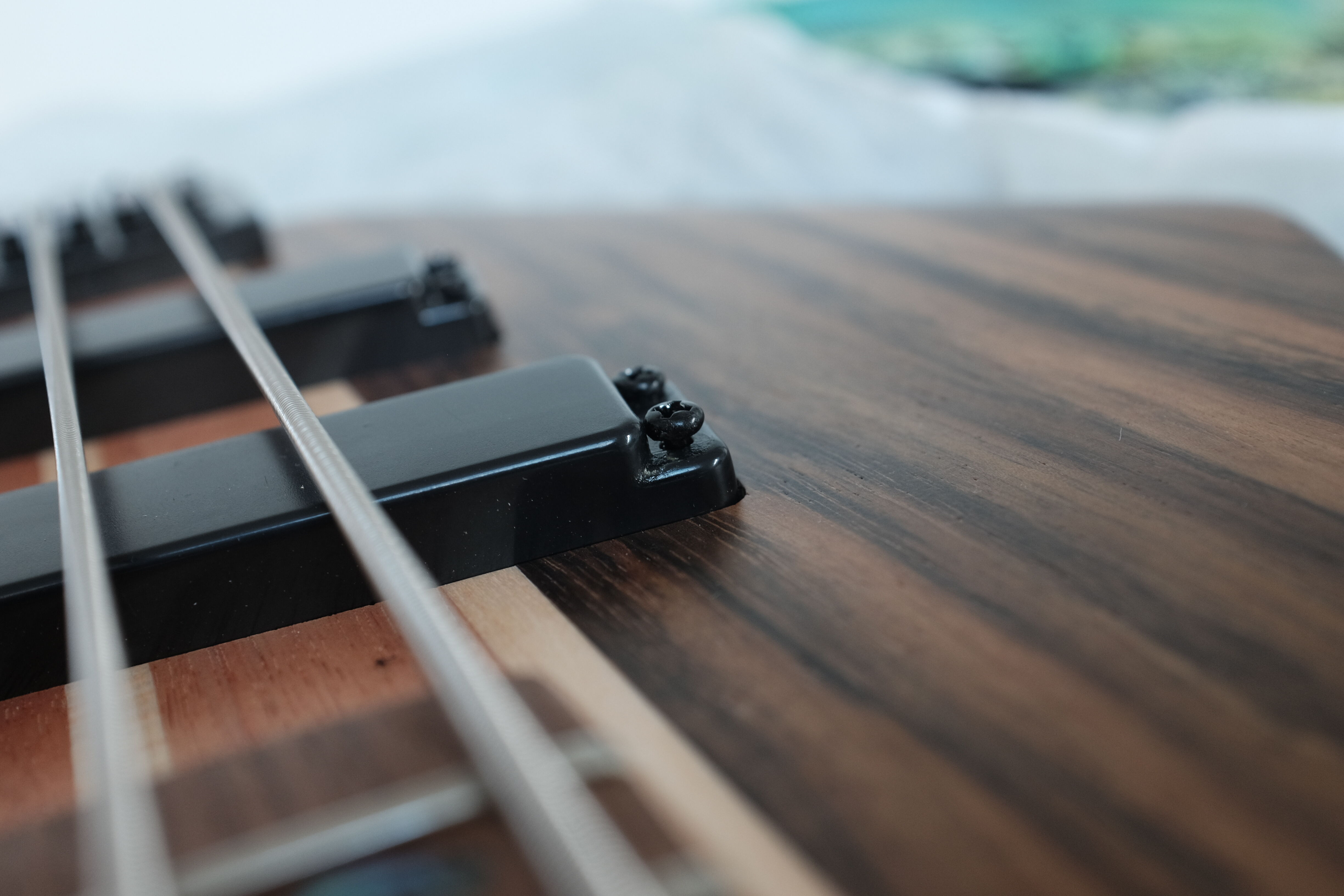 Számomra is hülyén hat a hangszedő ezen a bass-on, de igazából nem zavar. A dupla széles humbuckerek a fém pöttyökkel még hülyébben mutatnak