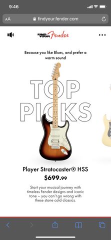 A semi hollow-ra kivancsi leszek, de attol tartok, hogy a test miatt az talan hangosabb es az miatt kiesik.A fender gitar javaslo ezt dobta a kis interaktiv app alapjan.