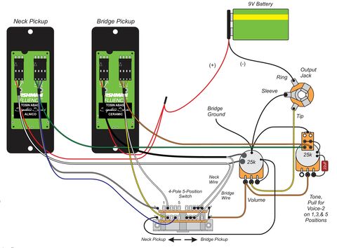 Feltettem a gitárra egy már használt Elixir nickel nanowebet. És most ezzel.....Használtan vettem egy Fishman Fluence Tosin Abasi szettet. Gitárból szerelték ki, nincs hozzá 9v-os elem csati és stereo jack aljzat. Mégis valahogy begányoltam a gitárba. Tuti, hogy nem is jól kötöttem be, mert a push-pull potik semmit nem csinálnak, de a világon sehol nem találtam 1T 1V push-pull 5 way bekötésit.