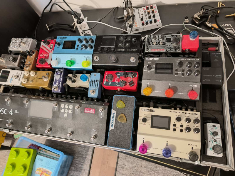 Könnyebb eltalálni a kapcsolót a sötét színpadon, és a középső és hátsó pedálokon meg kicsit megemelik a kapcsolás helyét. Pont most rendeltem még 12db-ot és néhány pedálon 2szintesre fogom csinálni hogy még magasabbra kerüljön és könnyebb legyen megnyomni. Így kevésbé van az, hogy két gombot nyomok be egyszerre vagy eltekerek lábbal egy potit...