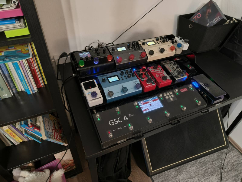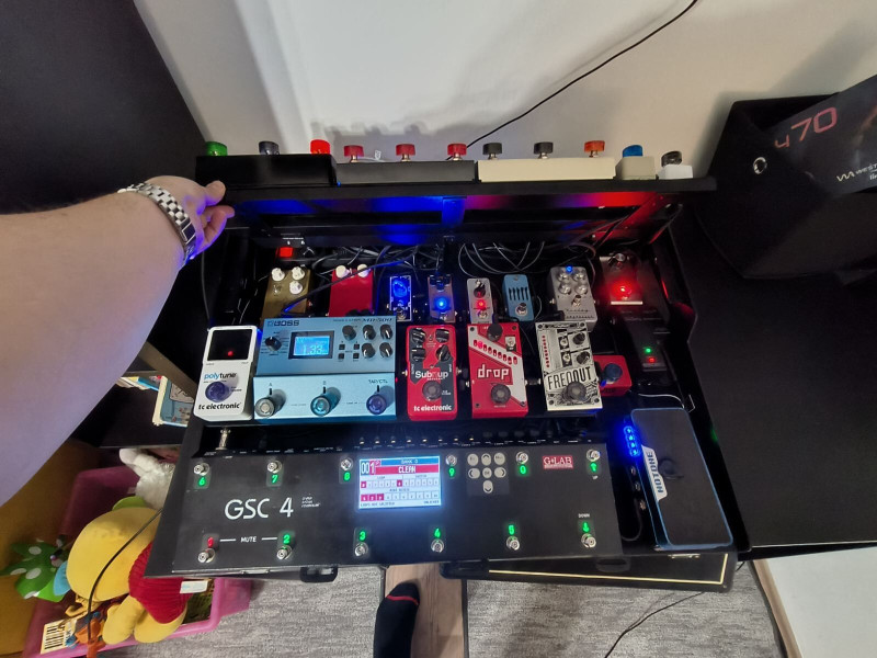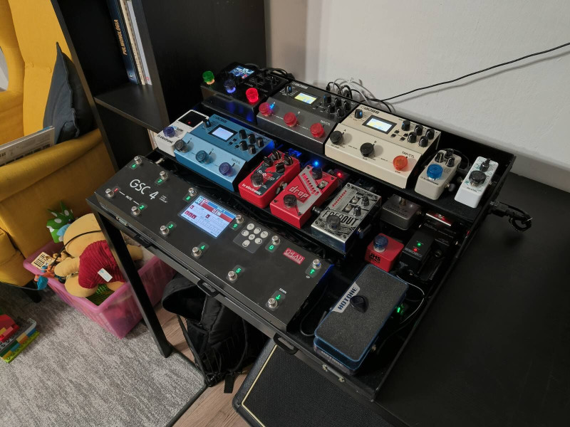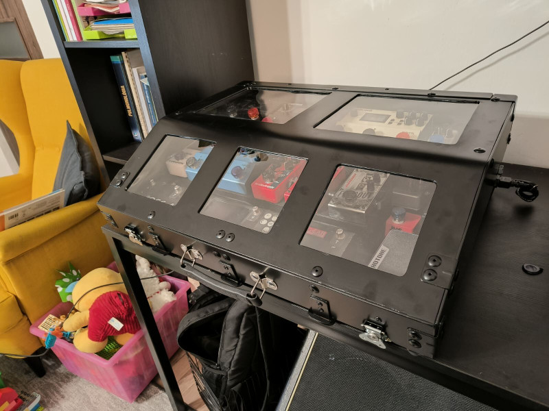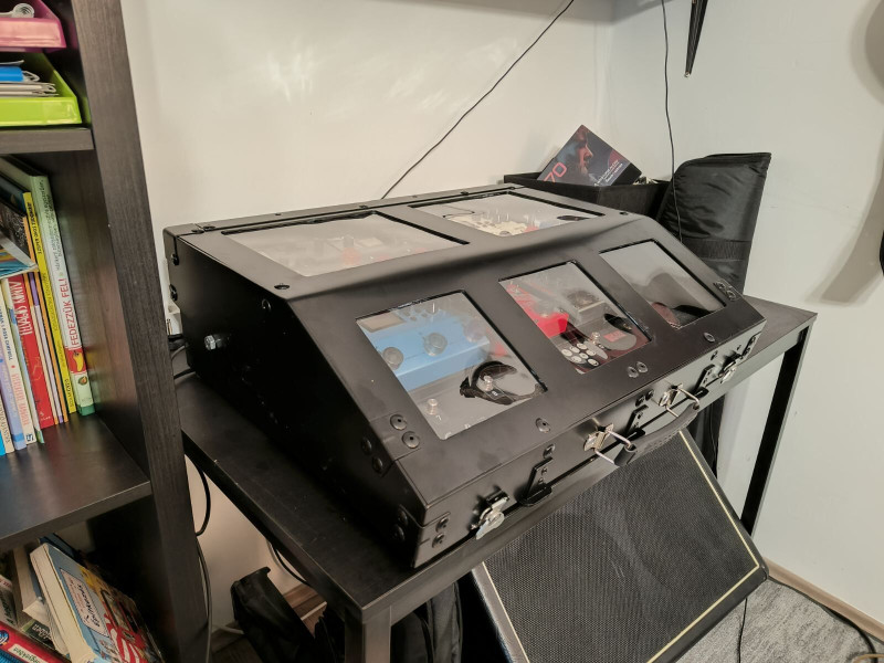 Készítettem egy új pedál tartó dobozt én is magamnak, 3mm alu lemezből, porfestve, ma fejeztem be a kábelezést és a tesztelést.