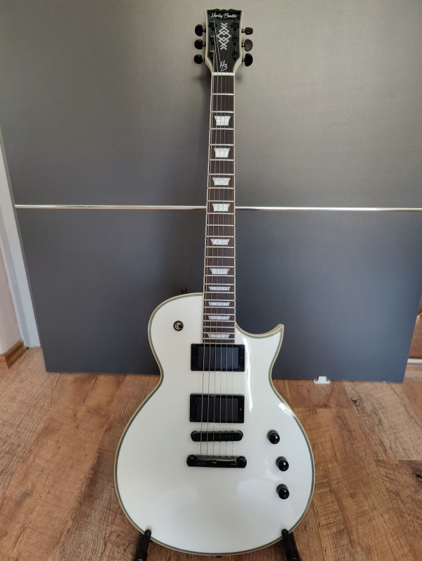Nem tetszik a gitár se alakra, se kinézetre. Kicsit unom már ezeket az 1 színű gitárokat, nem tudom néztétek-e, de nem nagy választék van egyedi festésű gitárok terén manapság. Arrébb lett rakva rajta 2 potméter, csak ilyen semmilyen selyemfényű fekete színben lehet megvenni, ami külön vicces, megjegyezte hogy azért, mert nem akarja az ujjlenyomatokat nézegetni, erre feltettek rá még pluszba egy tükör koptatólapot....