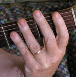 Persze nem feltétlenül kell áthangolni a gitárt. Lehet edzeni normál hangolásban is, ott mindvégig játszik ugye a másik három ujj is...