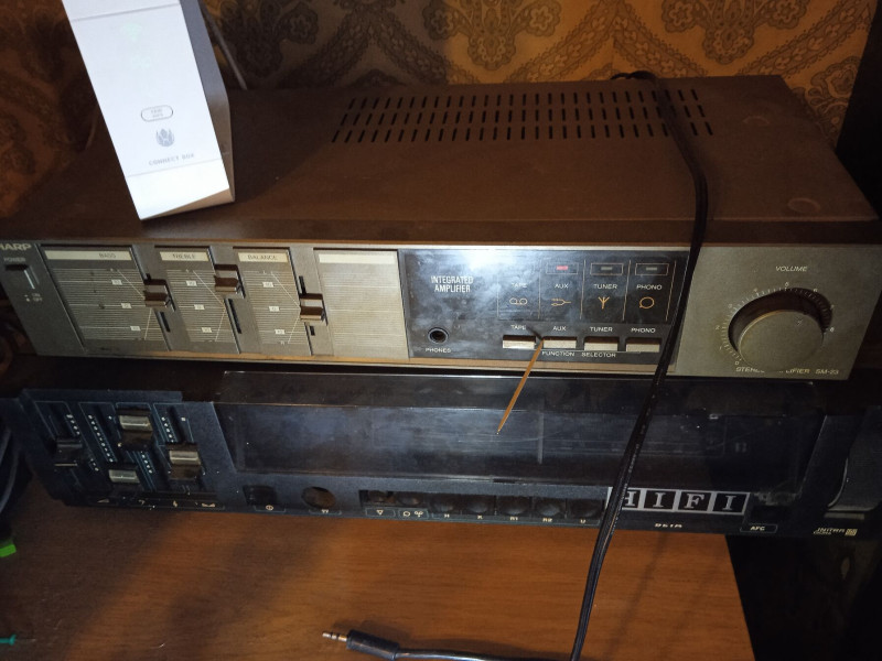 1100 éves Sharp minitoronyból megmaradt erősítőre kötöttem a gitárt. Kibaszott jó hangja van!