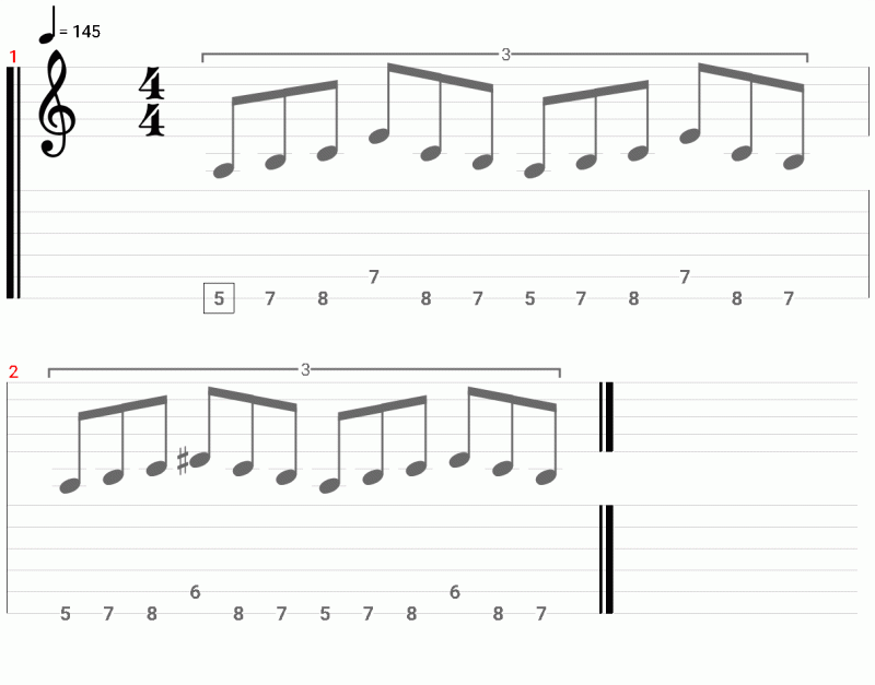 De akkor jó eséllyel gyorsan sem megy teljesen pontosan. Azzal szoktam kínozni magam, hogy a nehéz részeket jó sokszor megismétlem, még ha a zenében nincs is annyiszor. Például Anthrax - One World 44. másodpercénél hallható riffnél. A vastag E-húron 3-0-0-3-0-0 (tizenhatod-tizenhatod-nyolcad-tizenhatod-tizenhatod-nyolcad). Ezt 205 bpm-mel kell. Hű, hogy ezzel mennyit szenvedtem, hogy úgy tudjam játszani, hogy jól is szóljon. Piszok fontos a pontosság (meg a feszes gitársound), különben nem jön át ütősen a riff. Ezt a 3-0-0-3-0-0-t sokkal egyszerűbb volt úgy játszani, ahogy a zenében van, hogy jön utána a két kvint, és bár el tudtam játszani, valahogy mégsem jött át. Aztán kezdtem gyakorolni: 3-0-0-3-0-0-3-0-0-3-0-0-3-0-0... végtelenítve, és sokkal szenvedősebb volt már harmadjára is a 3-0-0, mint kétszer. Számomra ez jelezte, hogy csak berögzült valami már-már reflexesen, "lendületből", de az igazán nagy pontosság hiányzott.