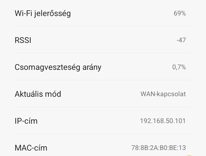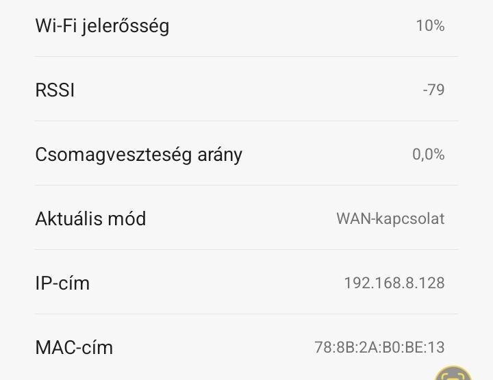 Az lehet, de Tomato-ban látod. [kép] Amúgy javaslom nézd meg úgy, hogy közben nézd a kamerát, vagy indíts róla visszajátszást, a lényeg, hogy legalább próbáljon forgalmazni a router felé, mert lehet anélkül valami energiatakarékos módba vált. Csak azért gondolom, mert ez a -85 dBm is elég gyengének tűnik nekem.