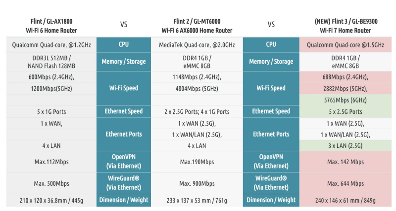 Ahogy nézem annyiban tér el a képen lévő spectől, hogy a linken szereplőben nincs 6GHz, helyette gyorsabb az 5GHz, viszont a SoC ugyanaz, 1,5GHz, tehát pl. VPN is lassabb. De nekem mindegy is, abszolút elégedett vagyok a Flint2-vel, eszembe sincs váltani. Nekem ez most pár évig jó lesz, az tuti.