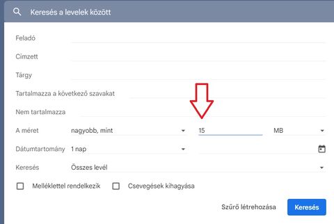abban kérnék segítséget, hogy a gmailben hogyan tudok keresni/szűrni olyan levelekre, amiknek a csatolmánya nagyobb mint 15 MB