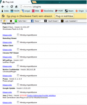 A plugineknél le kell tiltani azt a flash plugint, amelyiknek az elérési útjában Pepperflash található (elvileg pepperflash.dll -re végződik)