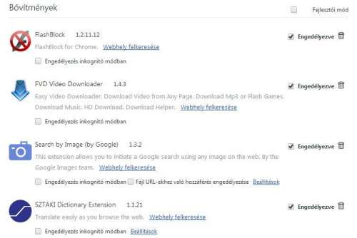 Nem nagyon találtam ilyen bővítményeket, igaz még csak most próbálgatom a chrome-ot. (nem nagyon tetszik, hogy alig lehet beállítani egy-két dolgot) -