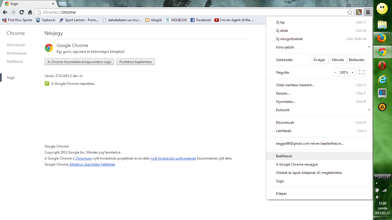 Feltettem a beta 26-os chrome-ot (elvileg hamarosan megjelenik) és mit ne mondjak, eszméletlen gyors, még mielőtt valaki lehurrogna, hogy ha takarítást csinál az ember, akkor méggyorsabb, hát megsúgom, azon felül lett még gyorsabb! A jobklikkes menü, meg a kis csavarkulcsos menü felülete megváltozott. Állítólag van valami eszköztár is hozzá, launcher féleség:
