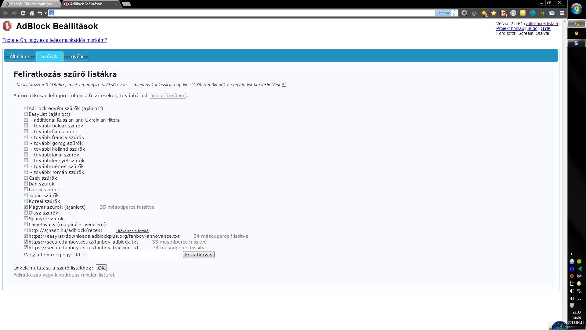 Teljesen berendezkedtem a Chrome-ra, ugyanúgy használom, mint a firefox-ot. Nagyon tetszik, rendkívül gyors is a kicsike, viszonylag egyszerűen be is tudok rajta állítani minden, számomra lényeges opciót, de akadt egy kis problémám.