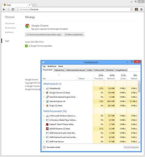 32 bites Win7 Ultimate van, Chrome Verzió: 36.0.1985.125 m