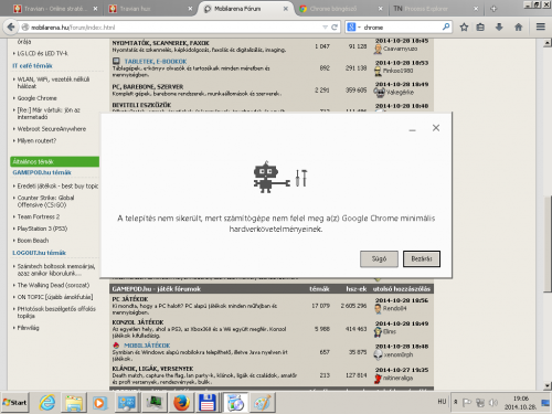 sziasztok van egy Asus A7N8X-X (5 PCI, 1 AGP, 3 DDR DIMM, Audio, LAN) alaplapom 2 gb ram van benne egy titánium 4200 video kártya xp sp3 fut rajta nem engedi telepiteni a chromot .Azt az üzenetet kapom hogy nem felel meg a hardverkövetelményeknek valamint ezt a számsort 0xc00001d .Köszönöm