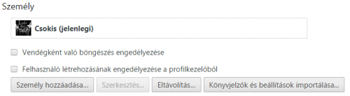 Mert hirtelen lett egy felhasználói név a jöbb felső sarokban a kicsinyítési ikon mellett, ami egy gomb lenne. A beállítások menűben meg lett egy Személy rész.