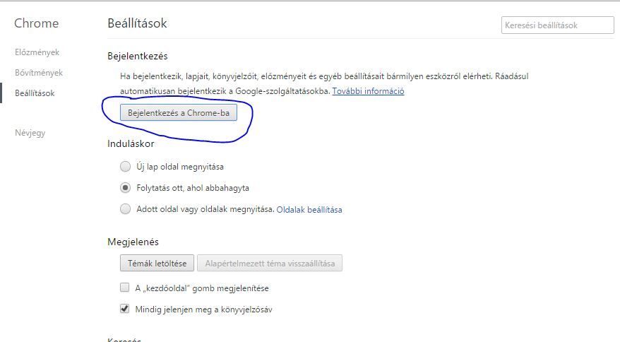 Tehát beállítások->beállítások és ott a bejelentkezés kis gombra ha rákattintok, akkor csak pörög a windows kerék majd eltűnik a kis kerék és nem történik semmi.....Ezzel az a baj, hogy az elmentett lapok, beállítások, bővítmények és egyéb, nem jön ugye vissza, amit már felépítettem pár év alatt....