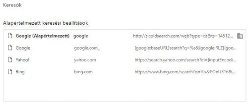Beállítások, Keresés, Keresőmotorok kezelése.