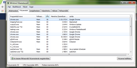 Az normális ha bezárom a Chromeot, azután még a feladatketelőben továbbra is látom a futó feladatok között? 0.2-0.3% prociterhelést csinál.