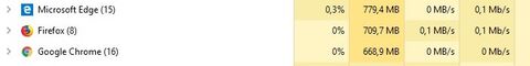 Délután kipróbáltam kíváncsiságból milyen a memória használata az általam használt 3 böngészőnek, nincsenek nagy különbségek. Ugyanazok a weboldalak voltak megnyitva, a saját beállítasaim mellett a Chrome kér már jó ideje kevesebb ramot, pedig neki 7 bővítménye is van telepítve, FF-nak 2 és az Edge-nek 3.