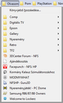 Igen, ezt tudom és épp ezt szeretném kiváltani, mivel ez nekem nagyon nem tetszik. A lényeg, hogy ha a könyvjelzősávon lévő Olvasom mappára rákattintok, akkor rögtön legyen ott egy Könyvjelző hozzáadása opció legelől. Készítettem egy képet, hogy Firefox alatt hogy van.