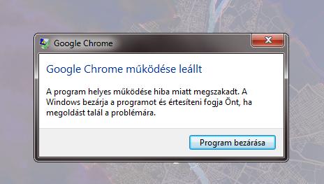 Miután belépek újra a Chromeba, egy hibaüzenet fogad: