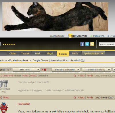 Vazz, nem tudtam mi ez a sok hülye macska mindenhol, hát nem az AdBlock mutogatja? Április1 van, mi?