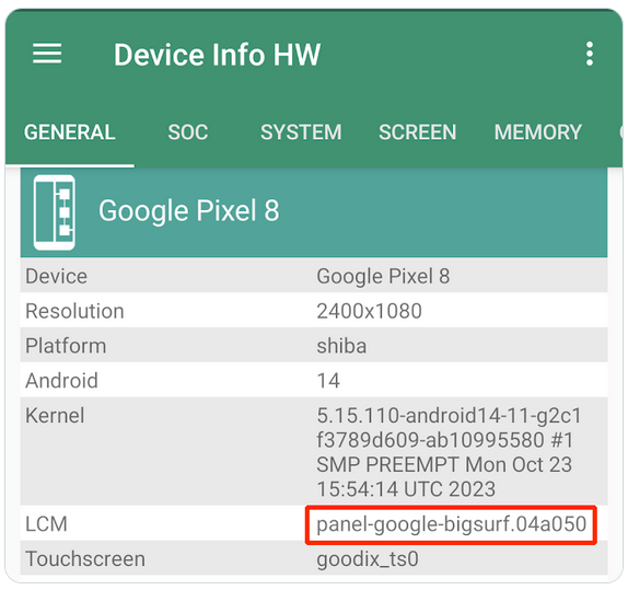 Kétféle panellel szerelték Pixel 8-kat. BOE és Samsung gyártotta őket. BOE ami hajlamosabb a kijelző hibára. Külföldi fórumok alapján, akik visszaküldték Google-nek javításra, azok Samsung panellel kapták vissza.