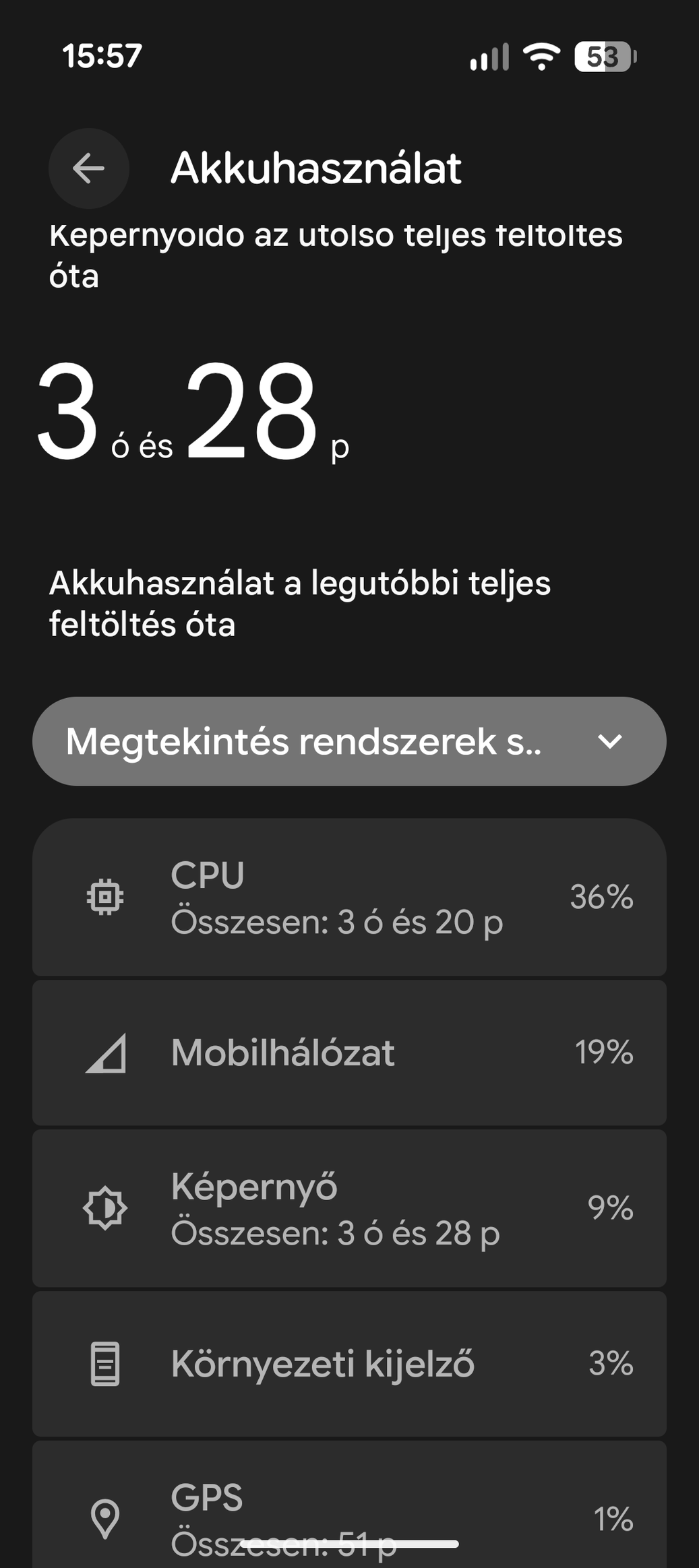 most megnéztem, kb nálam is ez van, mobilhálózat, cpu, wifi, képernyő....