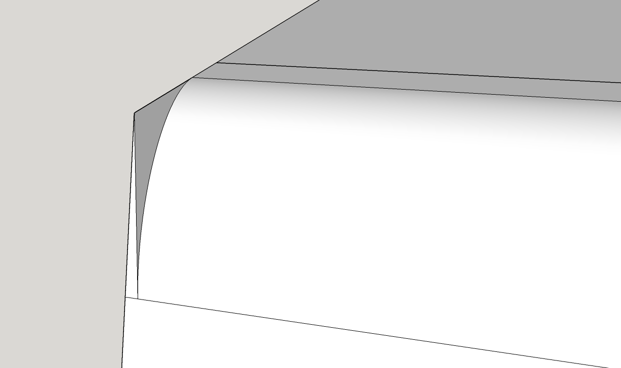 Kiegészítő nélkül: ha mindkét oldal párhuzamosan ferde akkor két oldalról kell a kerekítést csinálni (follow me funkcióval), a végeket megigazítani (kiegészíteni, illetve törölni) és úgy jó lesz.