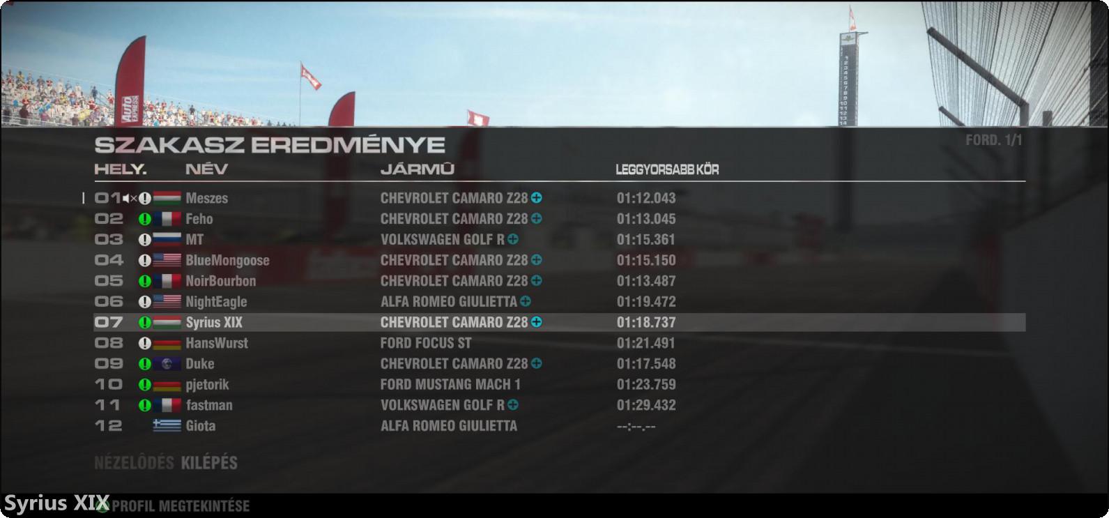 Nálam jobbakkal + hiába játszom, ha rajt után max. 2-3 kanyarig látom, már ha látom egyáltalán!