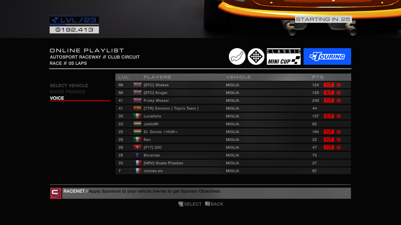 Kezd már időnként kihozni a sodromból a játék, ezek az apró baromságok, hogy nem tudunk rendesen multizni mert vagy kifagynak az ai-k, vagy a session csak úgy szétkapcsol, a Racenet Challenge-en most is úgy felhúztam magam, mindkét Caterham-es játékon, hogy lehet a szomszédok is felkeltek akkorát anyáztam, pedig nem szokásom. Túlzás nélkül a harmincadik nekifutásra tudtam végigmenni normálisan, a másodikat meg a 20. próbálkozás után zártam inkább, mielőtt még szétverem a gépet. És utána ez, a mentéssel. Nem beszélve arról, hogy a klub festést kb. 2-3 napig hajlandó megjegyezni a játék, utána csak üres zárójeleket mutat, ezt tudom hogy nem csak nálam csinálja, de akkor meg nem értem miért nem tudják javítani. Bár ha csak ez lenne a legnagyobb probléma... De hogy lenulláz 5 autót csak úgy, meg embereknek elszállnak a mentései egyik pillanatról a másikra?! Nem arról van szó, hogy azért játszok, hogy szintezzem ezeket a szarokat, amúgy sem állítok rajta soha semmit, 50 alatt meg szerintem nem dob látványosan egyik upgrade sem, hanem a közös játékért, de az ilyenektől egyszerűen elmegy a kedvem tőle.