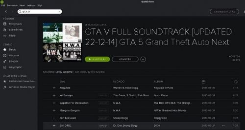 Tegnap már én is, meg mások is szóvá tették, hogy jó lenne a játákban megszólaló zenéket játékon kívül is hallgatni. Nálam a kívánságlistán még a Spotify is szerepelt, mint elérhető forrás, erre ma beírtam a Spotify keresőjébe, hogy "GTA V ", és voilá.