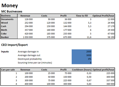 Nálam CEO kocsi biznszi, kokó, és cash. Ezt a 3-at tolom. Kocsikból a Standard, és a Mid range nem szabad eladni, így csak Top range autókat kell hogy kapj, azokat meg maxra tuningolva 80k/db. 1 óra alatt 240k csak ezekből.