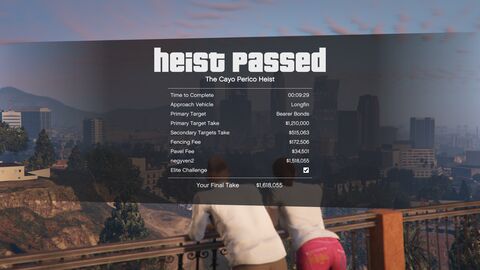 Na most megmertem, cayo perico, 52 perc volt a prep a setup befizetestol (12 perc a felderites es atlag 8 perc az 5 setupra), meg 16 perc a heist maga. Tehat akkor 68 perc....nem kapkodva.