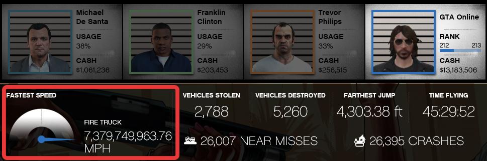 Úgy értem, hogy a készítők direkt úgy építették meg a törésmodellt, hogy akár egy lopott járművel is sokáig tudj vele menni. Ha a IV-ben látott törés maradt volna, akkor mire kiérsz a városból addigra már lehet hogy kocsit is cserélhettél volna (főleg ha megmarad a IV-s fizikai motor). Mivel ugye itt már lehet saját tuningolt járművünk (főleg Online-ban, nem lett volna szerencsét, az, hogy a rengeteg pénzért vett jármű+tuning két villanyoszlop után használhatatlan legyen).