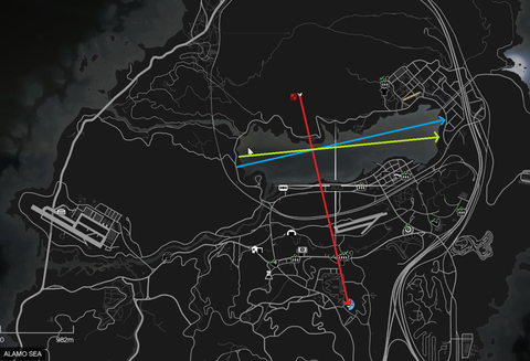 A kék és zöld nyilak az Alamo sea-n hosszában felvett távolságok. A kék hossza 572, a zöldé 540 egység.Sztem pont az jelenthető ki, hogy az Avenger ágyújának hatótávja az Alamo Sea hosszában. A két legtávolabbi pontját már nem éri el, de nagyjából minden máshol hosszában is átviszi.
