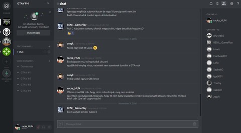 Egyébként ezért jó a Discord, mert több szobában lehet osztódni, aki egy MC-ben, Heist-ban, akármilyen job-ban van, külön tud kommunikálni a társakkal. Ha olvasom a chat-et, az utolsó 4-5 hozzászólás látszik csak, ha nem figyelek és nekem írtak valamit, 20 mp alatt lemaradok róla.
