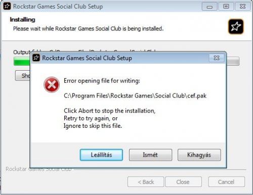 Direct x feltelepül, Rs Sc hibaüzenettel (error opening file for writing) b@szik feltelepedni.